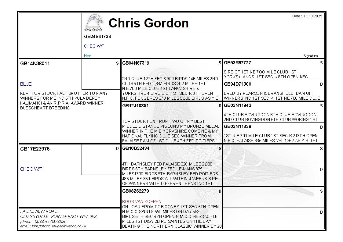 LOT CG347 GB24S41734 CHEQ HEN