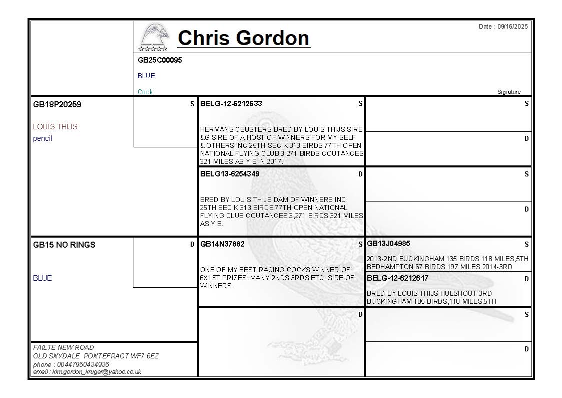 LOT CG08 GB25C00095 BLUE COCK