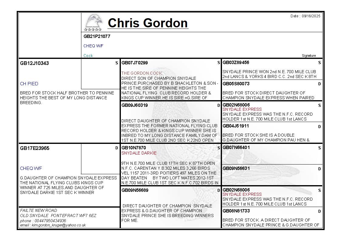 LOT CG20 GB21P21077 CHEQ W/F COCK
