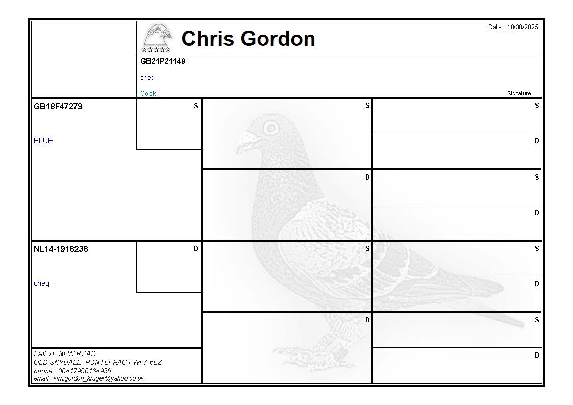 LOT CG212 GB21P21149 CHEQUER COCK