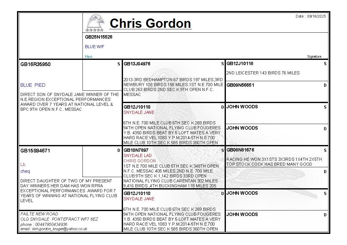 LOT CG23 GB25N15526 BLUE W/F HEN