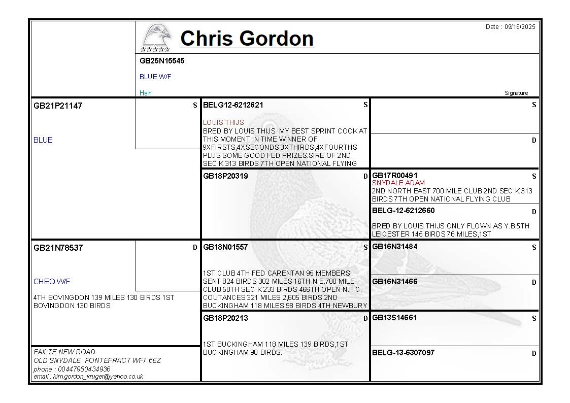 LOT CG307 GB25N15545 BLUE W/F HEN