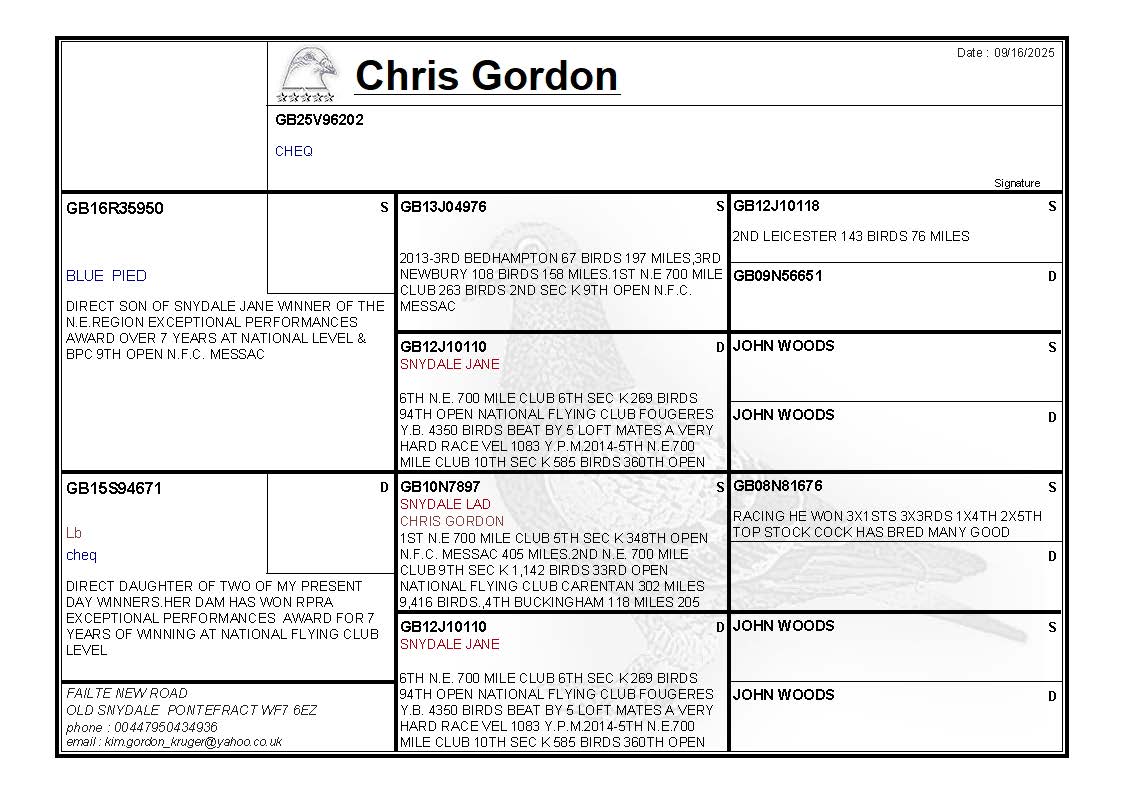 LOT CG309 GB25V96202 CHEQ HEN