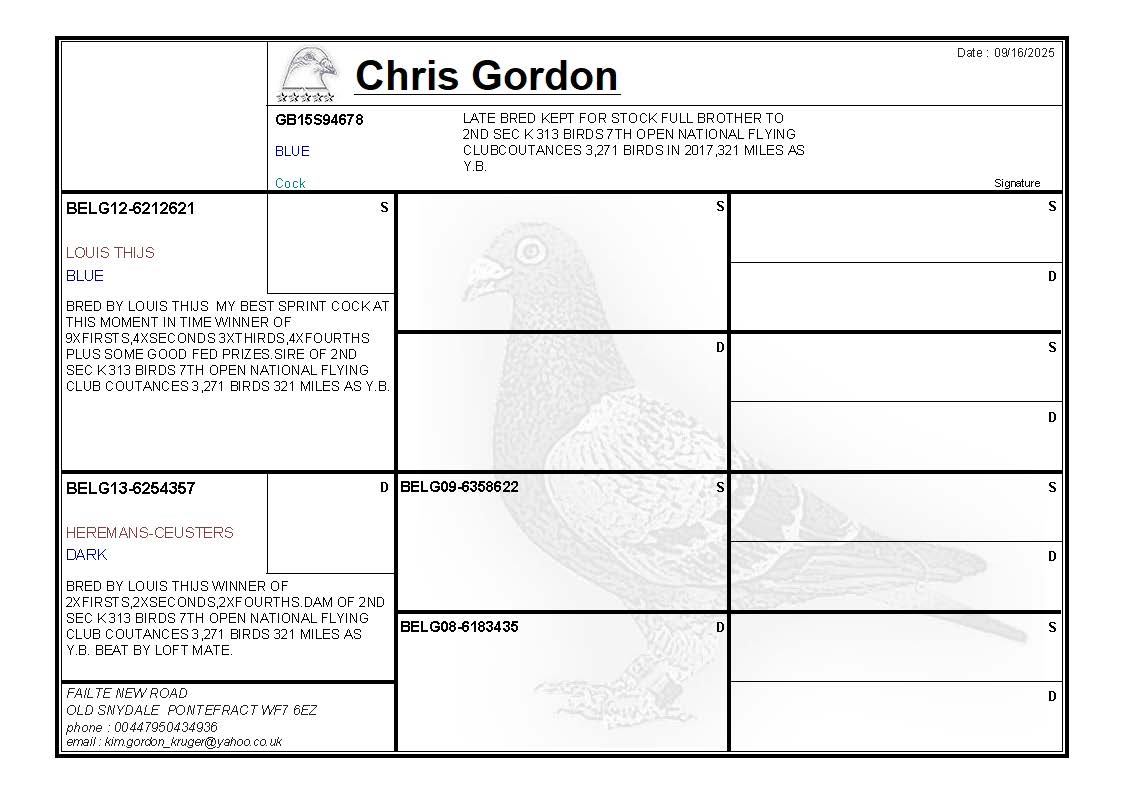 LOT CG314 GB15S94678 BLUE COCK