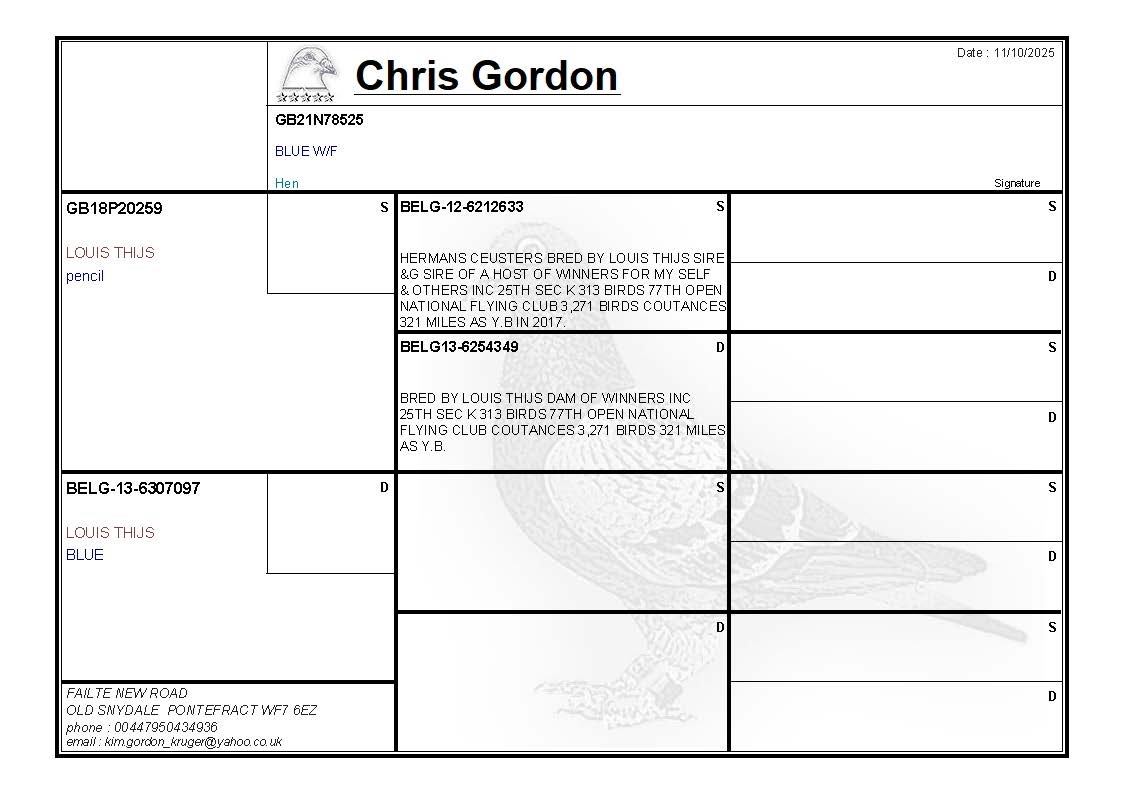 LOT CG373 GB21N78525 BLUE W/F HEN