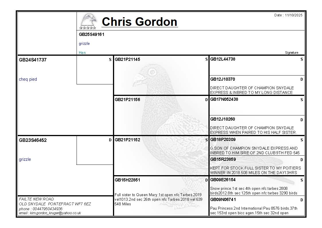 LOT CG411 GB25S49161 GRIZZLE HEN