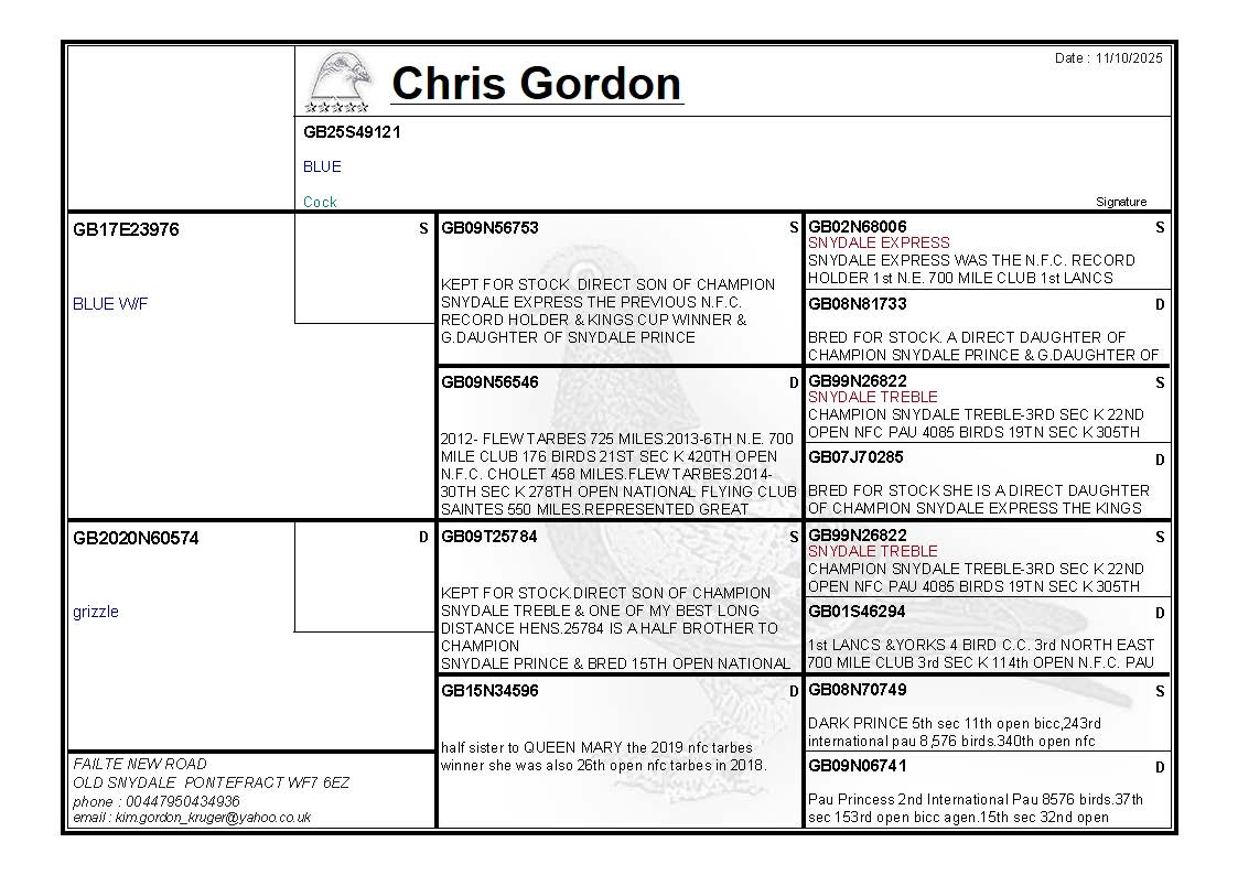 LOT CG425 GB25S49121 BLUE COCK