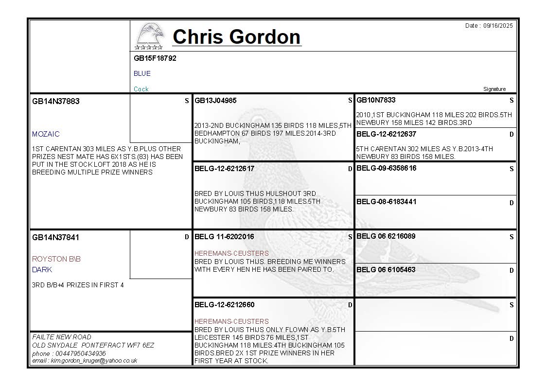 LOT CG433 GB15F18792 BLUE COCK
