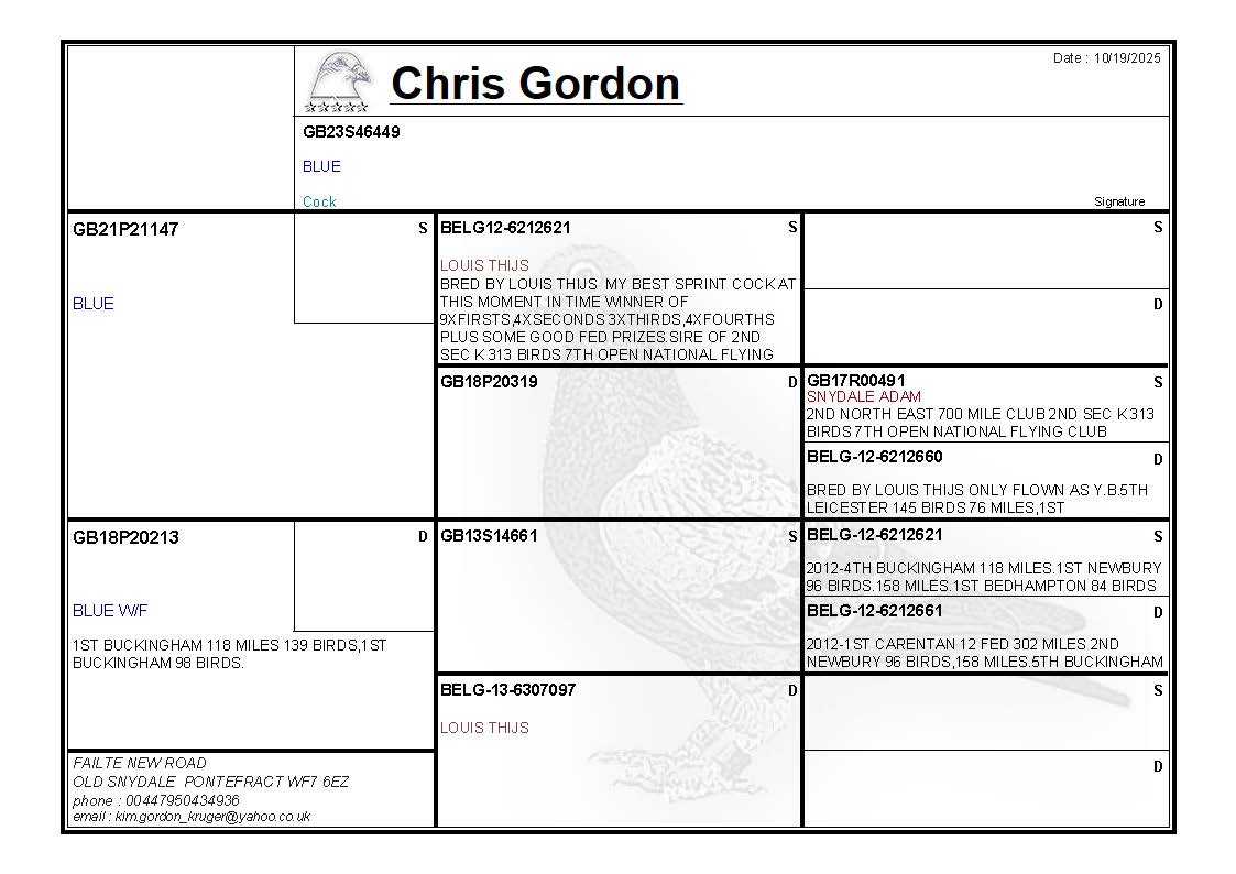 LOT CG453 GB23S46449 BLUE COCK