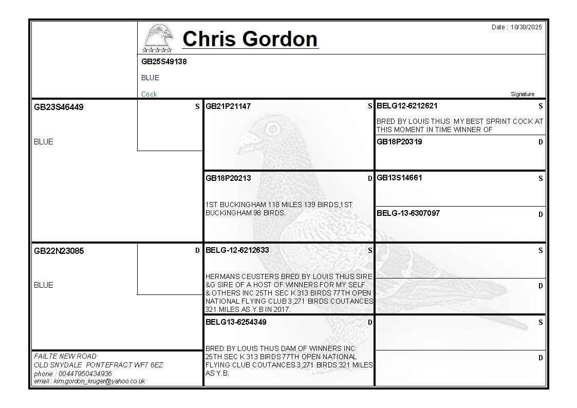 LOT CG464 GB25S49138 BLUE COCK