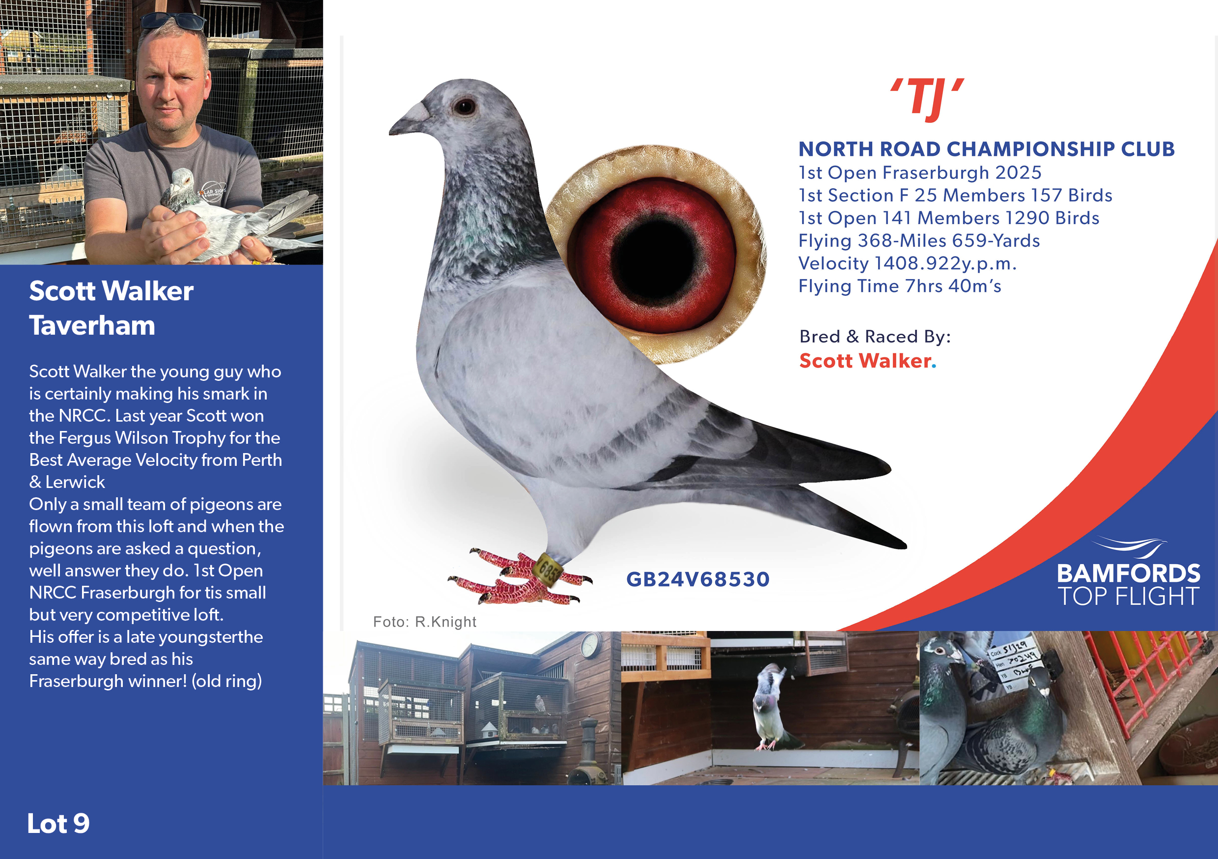 Old Ring Late bred for this sale (bred 2025) Grizzle This stunning young pigeon is the same way as the 2025 NRCC 1st Open Faserburgh winner. The sire is of Leo Hermans origin wile is dam is Hermans and van den Bulck origin via Nick Barran. Scott Walker the young guy who is certainly making hi smark in the NRCC. Last year Scott won the Fergus Wilson Trophy for the Best Average Velocity from Perth &