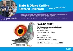 Dale and Diane Culling from Thetford were te winners of the NRCC Perth race in 2024 and are donating two youngsters that will be offered as ‘one lot’ in the sale, be sure not to miss these.